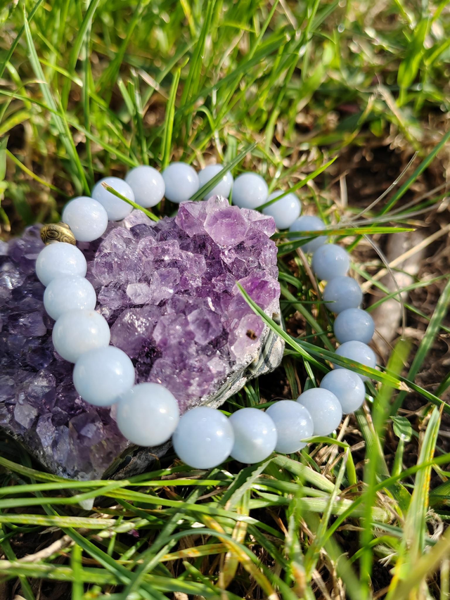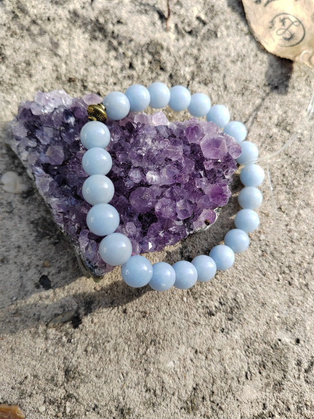Pierre des anges, l'Angelite est associée à la paix, la sagesse et la plénitude spirituelle.